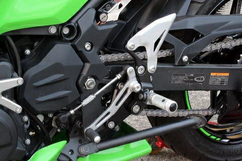 自分が乗ってる新型Ninja400向けにはベビーフェイスが純正ステップを活かしてバックステップ化するカスタムアイテム